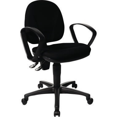 Bequemer "Small-Office"-Drehstuhl mit Formschaumpolster. Stufenlose Sitzhöhenverstellung mit Toplift. Formschaum-Rückenlehne als "medium back" mit integrierter Lendenwirbelstütze, stufenlos in Höhe und Neigung verstellbar. Permanentkontaktmechanik, zur Verstellung der Rückenlehnenneigung, stufenlos arretierbar. Formschönes und stabiles Fußkreuz. · max. Dauer der Nutzung/Tag: 4 Std./Tag · max. Größe des Nutzers: 1,92 m · max. Sitzhöhe: 53 cm · optionales Zubehör: Armlehnen · Sitzform: Muldensitz · Sitzhöhenverstellbereich: 41-53 cm · Sitztiefenverstellbereich: 46 cm · Masse (Gewicht): Nov 14 kg · Sitzmöbelverstellbarkeit vorhanden: Ja · Art der Sitzhöhenverstellung: stufenlos · max. Gewicht des Nutzers: 110 kg · Garantiedauer: 3 Jahre · Art der Rückenlehnenneigungsverstellung: Permanentkontaktmechanik · Breite des Sitzes: 47 cm · Farbe der Armlehne: schwarz · Farbe des Fußkreuzes: schwarz · Farbe: schwarz · Form des Gestells: 5-Stern-Fuß · Garantie gewährt: Ja · Art der Rückenlehnenhöhenverstellung: stufenlos