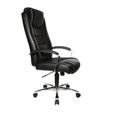 Exklusiver, aufwändig gearbeiteter Chefsessel in XXL-Size. Hoch aufgepolsterte Rückenlehne, aufwendig gesteppt mit eingearbeitetem Kopfpolster, für entspanntes Zurücklehnen. · Werkstoff der Armlehnenauflage: Kunstleder · max. Größe des Nutzers: 1,92 m · max. Höhe: 125 cm · max. Sitzhöhe: 50 cm · min. Höhe: 1.170 mm · min. Sitzhöhe: 42 cm · Sitzform: Muldensitz · Sitzhöhenverstellbereich: 42-50 cm · Sitzmöbelverstellbarkeit vorhanden: Ja · Systemkompatibilität gegeben: Ja · Werkstoff: Polyurethan · Werkstoff der Armlehne: Stahl · Werkstoff des Fußkreuzes: Stahl · Art der Rolle: Rolle hart gebremst (für Teppichboden) · max. Gewicht des Nutzers: 110 kg · Tiefe der Sitzfläche: 51 cm · Ausführung der Armlehne: beidseitig · Art der Sitzhöhenverstellung: Gasfeder · max. Dauer der Nutzung/Tag: 8 Std./Tag · Armlehne verstellbar: Nein · Art der Rückenlehnenneigungsverstellung: Wippmechanik · Ausführung der Lieferzusammenstellung: inkl. 2 Armlehnen · Bauform der Armlehne: Ringarmlehne · Breite des Sitzes: 54 cm · Garantiedauer: 3 Jahre · Masse (Gewicht): 20 kg · Höhe der Rückenlehne: 70 cm · Farbe der Unterkunststoffschale: schwarz · Garantie gewährt: Ja · Form des Gestells: 5-Stern-Fuß · Farbe: schwarz · Farbe des Fußkreuzes: schwarz