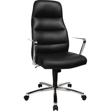Ein TOPSTAR Produkt - begeisternd, modern und vor allem zuverlässig. Exklusiver Synchron-Chefsessel aufwendig gepolstert und abgesteppt. Sitz mit Knierolle, stufenlose Sitzhöhenverstellung mit Toplift. Synchron-Mechanik, Federkraft individuell auf das Körpergewicht einstellbar. Bequem gepolsterte Rückenlehne mit modernen Steppnähten, Arretierung in aufrechter Position. Flügelarmlehnen. Ein echtes Qualitätsprodukt "made in Germany". · Montageart bei Lieferung: zerlegt · max. Dauer der Nutzung/Tag: 8 Std./Tag · Werkstoff: Leder · max. Größe des Nutzers: 1,92 m · max. Sitzhöhe: 46 cm · min. Sitzhöhe: 38 cm · Sitzform: Muldensitz · Sitzhöhenverstellbereich: 38-46 cm · Sitzmöbelverstellbarkeit vorhanden: Ja · Tiefe der Sitzfläche: 48 cm · Werkstoff der Armlehne: Aluminium, verchromt · Masse (Gewicht): 14 kg · Werkstoff des Fußkreuzes: Stahl, verchromt · Art der Rückenlehnenneigungsverstellung: Synchronmechanik · Höhe der Rückenlehne: 66 cm · Art der Rolle: Rolle hart gebremst (für Teppichboden) · Art der Sitzhöhenverstellung: Gasfeder · Ausführung der Armlehne: beidseitig · Ausführung der Lieferzusammenstellung: inkl. 2 Armlehnen · Bauform der Armlehne: Flügelarmlehne · Farbe der Armlehne: chrom · Farbe des Fußkreuzes: chrom · Farbe: schwarz · Form des Fußkreuzes: 5-Stern-Fuß · Garantie gewährt: Ja · Garantiedauer: 3 Jahre · Breite des Sitzes: 50 cm · max. Gewicht des Nutzers: 110 kg