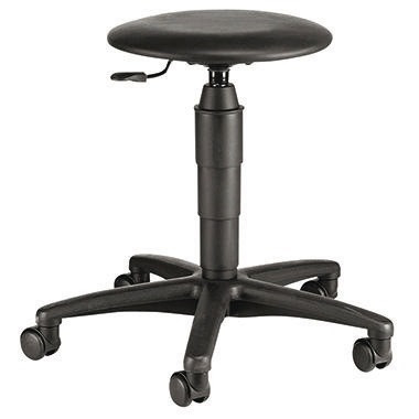 Sitzhocker mit runder Sitzfläche, stufenlos höhenverstellbar. · max. Dauer der Nutzung/Tag: 8 Std./Tag · Werkstoff der Sitzfläche: Kunstleder · Tiefe der Sitzfläche: 35 cm · Sitzmöbelverstellbarkeit vorhanden: Ja · Sitzhöhenverstellbereich: 39-52 cm · min. Sitzhöhe: 39 cm · max. Gewicht des Nutzers: 110 kg · Werkstoff des Fußkreuzes: Polyamid · Form des Fußkreuzes: 5-Stern-Fuß · Farbe: schwarz · Farbe des Fußkreuzes: schwarz · Farbe der Sitzfläche: schwarz · Breite des Sitzes: 35 cm · Art der Rolle: Rolle hart gebremst (für Teppichboden) · Masse (Gewicht): 6,5 kg · max. Sitzhöhe: 52 cm