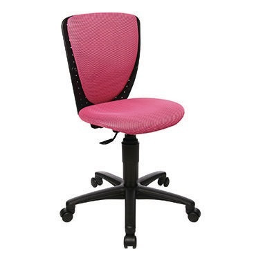 Hohe Rückenlehne in Kunststoff schwarz mit zusätzlichem Rückenpolster. Mit synchroner Federwirkung, in Höhe und Tiefe stufenlos verstellbar zur optimalen Anpassung auf die Körpergröße. · Werkstoff des Fußkreuzes: Polyamid · min. Höhe: 810 mm · max. Größe des Nutzers: 1,59 m · max. Höhe: 94 cm · max. Sitzhöhe: 51 cm · max. Gewicht des Nutzers: 60 kg · min. Sitzhöhe: 39 cm · Sitzform: Muldensitz · Sitzhöhenverstellbereich: 39-51 cm · Tiefe der Sitzfläche: 39 cm · Werkstoff des Gestells: Kunststoff · Werkstoff: Polyester · max. Dauer der Nutzung/Tag: 4 Std./Tag · Form des Gestells: 5-Stern-Fuß · Sitzmöbelverstellbarkeit vorhanden: Ja · Ausführung der Verstellmöglichkeit (Sitzmöbel): Sicherheitslift, Rückenlehnenverstellung, Neigemechanik, Syn · Garantiedauer: 3 Jahre · Masse (Gewicht): 8,5 kg · Art der Rückenlehnenhöhenverstellung: stufenlos · Art der Sitzhöhenverstellung: Gasfeder · Art der Rolle: Rolle hart gebremst (für Teppichboden) · Breite des Sitzes: 43 cm · Farbe der Rückenkunststoffschale: schwarz · Farbe des Fußkreuzes: schwarz · Farbe: pink · Form des Fußkreuzes: 5-Stern-Fuß · Garantie gewährt: Ja · Höhe der Rückenlehne: 43 cm · Lordosestütze verstellbar: Ja · Art der Rückenlehnenneigungsverstellung: Synchronmechanik