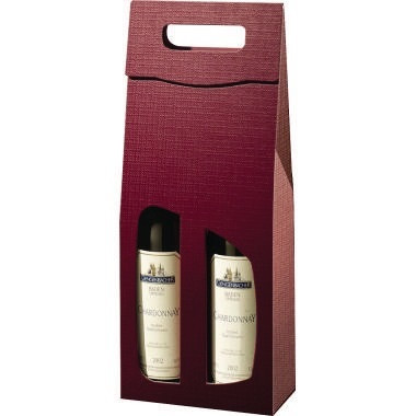 Geschenktragetasche mit strukturierter Oberfläche für Wein- und Sektflaschen mit extra langem Sichtfenster und perfektem Tragegriff. Lieferung ohne Inhalt. · Oberflächenstruktur: geprägt · Boden vorhanden: Ja · Werkstoff: Karton · Verwendung für Produkt: 2 Flaschen · Griff vorhanden: Ja · Farbe: bordeaux · Maße: 18 x 36,5 x 9 cm (B x H x T)