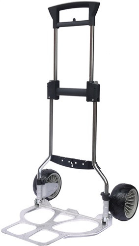 hoher Fahrkomfort auch auf unebenem und weichem Untergrund durch extra breite, kugelgelagerte Räder · Rahmen aus verchromtem Stahlrohr, Schaufel aus Aluminium · glasfaserverstärkte Kunststoffe · mit wenigen Handgriffen einsatzbereit - Schaufel und Räder schwenken gleichzeitig aus · platzsparend zusammenklappbar · Spannfix-System zur Ladungssicherung · Räder mit pannensicherer Polymerbandage · Naben mit Kugellager · Rollfunktion auch im geklappten Zustand · Weitere technische Eigenschaften Tiefe geklappt: 120mm • Gewicht: 6,8kg • Bereifung: Polymer • Höhe geklappt: 740mm • Breite geklappt: 495mm • Schaufelausführung: Aluminium