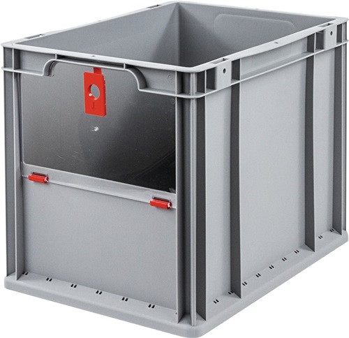 Transportstapelbehälter L400xB300xH320mm grau rot PP m.Klappscheibe