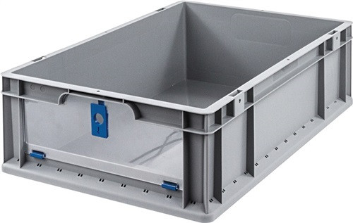 Transportstapelbehälter L600xB400xH170mm grau blau PP m.Klappscheibe