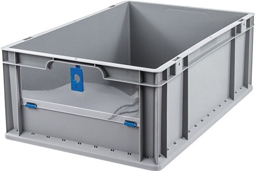 Transportstapelbehälter L600xB400xH220mm grau blau PP m.Klappscheibe