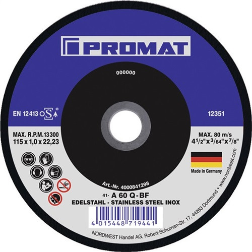 extradünn · zur Bearbeitung von Edelstahl und Stahl · optimal im Einsatz auch auf akkubetriebenen Winkelschleifern · hohe Schnittgeschwindigkeit und gute Lebensdauer · kühler Schnitt und geringe Gratbildung · Bohrung 22,23 mm Ø · Weitere technische Eigenschaften max. Drehzahl: 13300min-¹