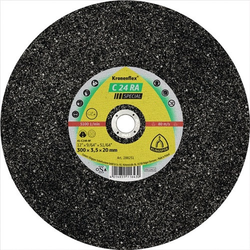 für Asphalt · einsetzbar auch auf Stein/Beton · scharfes und grobes Korn aus Siliciumcarbid · kein Zusetzen der Scheibe · Einsatz auf Benzin-Freihandmaschinen mit Schnittgeschwindigkeit von 80 m/s · Weitere technische Eigenschaften max. Drehzahl: 4400min-¹
