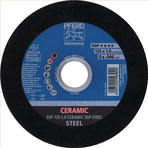 Keramikkorn · für die Bearbeitung von Stahl geeignet · sehr hartes, extrem belastbares Hochleistungswerkzeug in Härte T mit höchster Trennleistung und herausragender Standzeit · Bohrung 22,23 mm ø · Weitere technische Eigenschaften max. Drehzahl: 12200min-¹