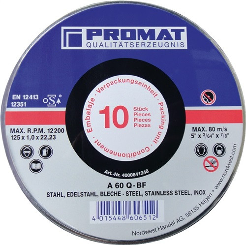 Trennscheibe INOX D115x1mm ger.INOX Bohrung 22,23mm 10er Dose PROMAT