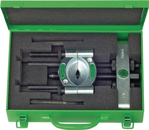 komplette Garnitur · mit Trennvorrichtung, Abziehvorrichtung und Verlängerung Anwendung: zum Abziehen von Kugellagern, Rollenlagern, Innenringen und anderen bündig aufsitzenden Teilen · Weitere technische Eigenschaften Inhalt: 1 Trennvorrichtung Gr. 3, 1 Abziehvorrichtung Gr. 3, 2 Verlängerungen Gr. 3 • Verpackung: Stahlkoffer