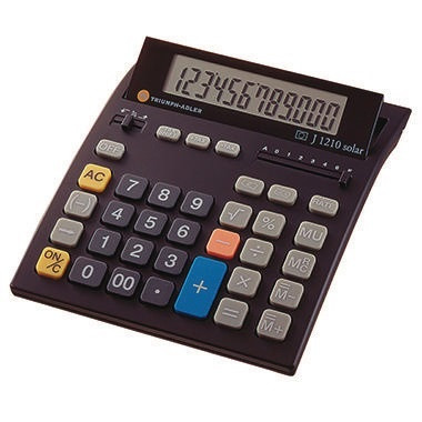 Dieser komfortable Rechner im edlen Design begeistert viele Anwender. Extra große Ziffern in der aufstellbaren Flüssigkristall-Anzeige, griffsichere Gummitasten und viele nützliche Funktionen helfen den Büroalltag zu bewältigen. Neben der Euro-Umrechnungsfunktion erleichtert auch eine automatische Mehrwertsteuer-Berechnung das Kalkulieren. Der Solarbetrieb funktioniert ab 50 Lux Dämmerlicht, wenn es dunkler wird, übernimmt eine Batterie automatisch die Versorgung. · Vorzeichenwechseltaste vorhanden: Ja · Mehrwertsteuerautomatik vorhanden: Ja · Netzanschluss vorhanden: Nein · Prozentrechnung möglich: Ja · Rundungsautomatik vorhanden: Ja · Schnellkorrekturtaste vorhanden: Ja · Speicher: 1 Speicher (3 Tasten) · Steuerberechnung möglich: Ja · weitere Funktionen: Aufschlagsberechnung (MU), Wurzelberechnung, Euro-Umrechnung · Ausführung der Dezimalstellenwahl: A, 0, 1, 2, 3, 4, 6, F · Währungsumrechnung vorhanden: Ja · Maße: 160 x 35 x 202 mm (B x H x T) · Tiefe: 220 mm · Ausführung des Displayanzeige-Umfangs: 1 x 12-stellig · Masse (Gewicht): 320 g · automatische Abschaltung vorhanden: Ja · Art des Displays: LCD · Batterien im Lieferumfang enthalten: Ja · Breite: 160 mm · Doppelnulltaste vorhanden: Ja · Farbe: schwarz · Höhe des Zeichens: 16 mm · Höhe: 35 mm · LCD-Anzeige vorhanden: Ja · Art der Hilfsenergie: Solar-Energie, Batterie