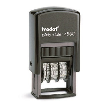 Selbstfärbender Datumsstempel mit Textplatte hergestellt aus mind. 70% Recycling-Kunststoff. · Farbe: schwarz · Werkstoff: Kunststoff · Stempeltext austauschbar: Nein · Stempelkissen austauschbar: Ja · Sichtfenster vorhanden: Nein · Schreibfarbe des Stempels: blau/rot · max. Anzahl der Druckzeilen: 2 Druckzeilen · Höhe der Schrift: 3,8 mm · Datumsformat des Aufdruckes: Monat in Buchstaben · Ausführung der Drucktexte: GEBUCHT · Abmessung der Stempelfläche: 23 x 12 mm (B x H) · Maße: 4 x 7,6 x 2,3 cm (B x H x T)