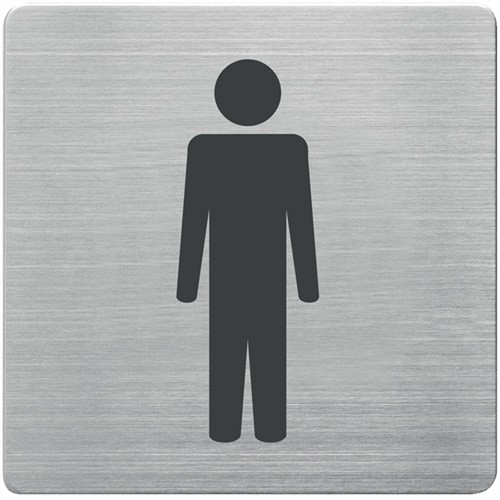 Tür-/Infoschild · vielfältige Einsatzmöglichkeiten · selbsterklärende Abbildungen · aus matt gebürstetem Edelstahl mit schwarzem Aufdruck · ein Selbstklebepad auf der Rückseite ermöglicht das Anbringen auf unterschiedlichen Oberflächen, z. B. Türen, Wänden, Glas · quadratisch mit abgerundeten Ecken, Stärke 1 mm · H 90 x B 90 mm
