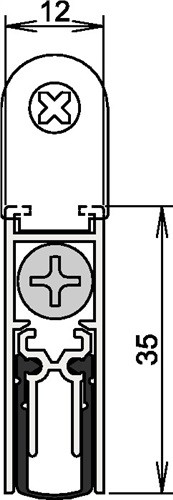 Auslösung 1-seitig auf Bandseite mit Auslöseknopf · selbstverlöschendes, hochwertiges Silikon-Dichtprofil · mit Zubehör 5220 · Aluminiumgehäuse · · bis max. 40 mm möglich · Dichtungshub 11 mm · Standardlängen um 125 mm kürzbar · Weitere technische Eigenschaften Oberfläche: silberfarben eloxiert • Kürzbar um: 125mm • Nuthöhe: 35mm • Modell: 1-392 • Nutbreite: 12mm