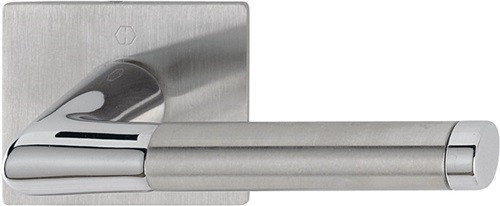 Hoppe-SchnellstiftPlus-Messing-Flachrosetten-Türgriff-Garnitur ohne Schlüsselrosetten für Innentüren · mit Hoppe Vollstift (Stift-/Lochteil) · geprüft nach DIN EN 1906:37-0140U, Objektgarnitur · Lagerung: Türgriff lose, wartungsfreie Gleitlager · aufsteckbare Edelstahl-Griffrosetten mit durchgehenden Stütznocken · für Türstärke 35-45 mm · Vierkantstift 8 mm · Drückerlänge 123 mm · Drückertiefe 52 mm · DIN links / rechts · Besonderheit: schrauben- und werkzeuglose Montage, 2 mm flache rechteckige Rosetten · Weitere technische Eigenschaften Befestigungssystem: SchnellstiftPlus