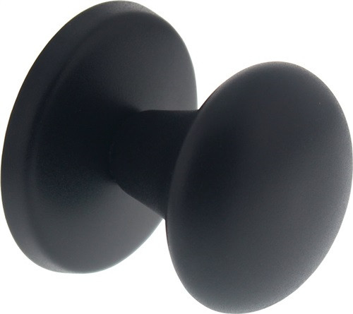 rund · Knopf massiv · Knopf Ø 58 mm fest auf Rosette Ø 66 mm · Rosettenunterseite mit Dorn gegen Verdrehen · im Knopfdrückerhals ist eine M8 Gewindeaufnahme · pulverbeschichtet · Weitere technische Eigenschaften Form: gerade • Knopftiefe: 63mm • Anschlagrichtung: DIN links / rechts