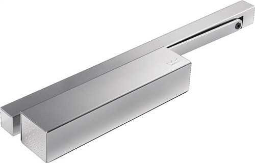 bestehend aus: Türschließer TS 93 B Gleitschienen-Türschließer nach EN 1154 · Größe EN 5-7 · im Contur Design · mit stark abfallendem Öffnungsmoment für leichtes Türöffnen gem. DIN SPEC 1104 · zur Montage auf der Bandseite · Schließgeschwindigkeit und Endschlag über Ventil komfortabel von vorn stufenlos einstellbar · hydraulisch kontrollierte Öffnungsdämpfung und Schließverzögerung einstellbar · Montagekonsole mit universellem Lochgruppensystem · DIN links und rechts verwendbar · für Türblattmontage Bandseite (Öffnungswinkel bis 180° möglich) oder Sturzmontage Bandgegenseite (Öffnungswinkel auf ca. 120° - 145° begrenzt) Gleitschiene G-EMF Contur Design mit Hebel · für TS 93 B oder G · ermöglicht ein exaktes Feststellen der Tür ohne Rückfederung · der Feststellpunkt ist auf einen Öffnungswinkel zwischen ca. 80° und 140° einstellbar · Hinweis: Feststellpunkt ist gleichzeitig max. Türöffnungswinkel, Türstopper setzen · im Alarmfall oder bei Stromausfall wird die Feststellung aufgehoben und die Tür vom Türschließer geschlossen · die Ansteuerung erfolgt über externe Rauchmeldezentralen (z. B. DORMA RMZ) · durch die einstellbare Ausrückkraft (werkzeuglos) kann die Feststellung auch von Hand problemlos ausgelöst werden · inkl. Hebel, Gleitschiene, elektromechanische Feststelleinheit, Verkleidung, Befestigungsschrauben und Endkappen · die Gleitschiene wird am Sturz montiert und ist sowohl für DIN-L als auch für DIN-R-Türen verwendbar · Betriebsspannung 24 V DC · Leistungsaufnahme 1,4 W · Einschaltdauer 100 % ED · bei besonders großen und schweren Türen (über 1250 mm) oder Türen, bei denen der Feststellpunkt über 120° liegen soll, empfehlen wir, an Stelle der EMF Haftmagnete DORMA EM in Verbindung mit der Rauchmeldezentrale DORMA RMZ einzusetzen · Weitere technische Eigenschaften Ausführung: Komplettset