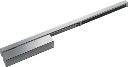 bestehend aus: Türschließer TS 93 B Gleitschienen-Türschließer nach EN 1154 · Größe EN 2-5 · im Contur Design · mit stark abfallendem Öffnungsmoment für leichtes Türöffnen gem. DIN SPEC 1104 · zur Montage auf der Bandseite · Schließgeschwindigkeit und Endschlag über Ventil komfortabel von vorn stufenlos einstellbar · hydraulisch kontrollierte Öffnungsdämpfung und Schließverzögerung einstellbar · Montagekonsole mit universellem Lochgruppensystem · DIN links und rechts verwendbar · für Türblattmontage Bandseite (Öffnungswinkel bis 180° möglich) oder Sturzmontage Bandgegenseite (Öffnungswinkel auf ca. 120° - 145° begrenzt) Gleitschiene G-EMR Contur Design mit Hebel · für TS 93 B und G · ermöglicht ein exaktes Feststellen von Feuer- und Rauchschutztüren · völlig unabhängig von anderen Systemen überwach- und steuerbar · der Feststellpunkt ist auf einen Öffnungswinkel zwischen ca. 80° und 140° einstellbar · Hinweis: Feststellpunkt ist gleichzeitig max. Türöffnungswinkel, Türstopper setzen · im Alarmfall oder bei Stromausfall wird die Feststellung aufgehoben und die Tür vom Türschließer geschlossen · durch die einstellbare Ausrückkraft (werkzeuglos) kann die Feststellung auch von Hand problemlos ausgelöst werden · inkl. Hebel, Gleitschiene, elektromechanische Feststelleinheit, Rauchmelder, Netzteil, Verkleidung, Befestigungsschrauben und Endkappen · sowohl für DIN-L als auch für DIN-R-Türen verwendbar · Anschlussspannung 230 V AC · Betriebsspannung 24 V DC · Nennausgangsleistung 9,8 W · Einschaltdauer 100 % ED · Anschlussmöglichkeiten für weitere Melder und externe Handauslösung sowie ein potentialfreier Alarmkontakt stehen ebenfalls zur Verfügung · bei besonders großen und schweren Türen (über 1250 mm) oder Türen, bei denen der Feststellpunkt über 120° liegen soll, empfehlen wir, an Stelle der EMF Haftmagnete DORMA EM in Verbindung mit der Rauchmeldezentrale DORMA RMZ einzusetzen · Weitere technische Eigenschaften Ausführung: Komplettset