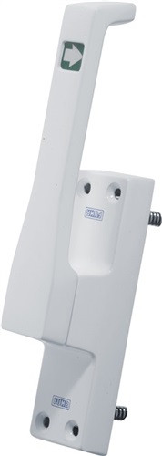 zum Feststellen des Standflügels an zweiflügeligen Türen · käntiges Design · für verdecktlaufende Rundstangen 10 mm · mit Totpunktstellung · Weitere technische Eigenschaften Material: Leichtmetall