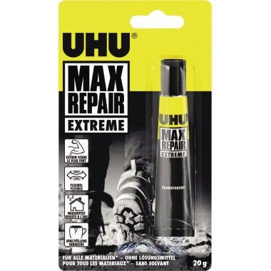 Produkte, die auf der UHU POLYMER TECHNOLOGY basieren, garantieren universelle, starke, flexible, dauerhafte, sichere und verbraucherfreundliche Lösungen für die Klebefälle des täglichen Lebens. Transparenter und isocyanatfreier Alleskleber MAX REPAIR für nahezu alle Reparaturfälle innen und außen. Er ist wasserbeständig (spülmaschinenfest), fugenfüllend und nach Trocknung überstreichbar. Er ist beständig gegen Vibrationen und Erschütterungen, ebenso UV-beständig und die Klebung bleibt elastisch. · ohne Lösungsmittel: Ja · Typbezeichnung des Spezialverschlusses: Drehkappenverschluss · Temperaturbereich: -40 bis +120 °C · Produktverwendung: universell · Masse (Gewicht): 20 g · Kategorie der Anfangshaftung: mittel · Ausführung des Behälters: Tube · auswaschbar: Nein · nachfüllbar: Nein