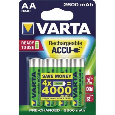 Varta Akku Ready2Use Mignon/AA HR6 Nickel-Metallhydrid 1,2V 2.600 mAh 4 St./Pack. · Bauform: HR6 · Nennspannung: 1,2 V · Typbezeichnung: Mignon/AA · Bauart: Nickel-Metallhydrid · Ausführung des Inhalts (Packung): 4 St./Pack. · freier Inhalt: 4 St./Pack. · Kapazität: 2.600 mAh