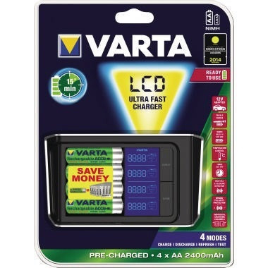 Der attraktive Sprinter für höchste Ansprüche. Attraktives, einzigartiges Design. LCD-Anzeige mit LED-Hintergrundbeleuchtung als Ladestatus-Indikator. 4 verschiedene Funktionen: Laden, Entladen, Refresh- und Kapazitätstest. Einzelschachtladung für bis zu 4 Zellen. Umfassende Sicherheitseigenschaften: Minus Delta-U Abschaltung, Sicherheitstimer, Kurzschluss-Schutz, Alkaline-Erkennung, Temperaturkontrolle und Lüfterfunktion. Großes Display für ein komfortables Ablesen der Werte: Volt, mAh und Minuten. · Garantie gewährt: Ja · Garantiedauer: 3 Jahre · Ladezeit des Akkus: 0,25 h · Netzfrequenz: 50 Hz · Netzspannung: 220-240 V · Timerfunktion vorhanden: Ja · Verwendung für Produkt: AA, AAA · Ausführung der Lieferzusammenstellung: inkl. 4 x AA-Akkus (2.400 mAh)