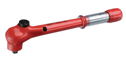· Mit automatischer Kurzweg-Auslösung und akustischem Signal · Von Hand einstellbare Doppelskala mit metrischen und SAE-Werten · Feinverzahnte Knarre mit Vierkantantrieb nach DIN 3120 - A 12,5, ISO 1174 · VDE isoliert bis 1000 V, nach EN 60900/IEC 60900:2004, 2-fach Check-Tool-Isolierung