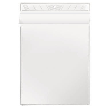 Mit Überfallklappe aus starker Hartfolie. Ideal für Aushänge, z. B. von Informationen mit Preisauslobungen etc. Mit mittig geschweißtem Aufhängeloch. · Maße: 16,3 x 21,5 cm (B x H) · Ausführung der Oberflächenbeschaffenheit: glänzend · Werkstoff: Polypropylen · Verwendung für Papierformat: DIN A5 · Packungsmenge: 10 St./Pack. · Anordnung der Lage (Öffnungsseite): oben offen · Dicke der Folie: 0,14 mm · Aufhängeloch vorhanden: Ja · Farbe: glasklar · dokumentenecht: Ja