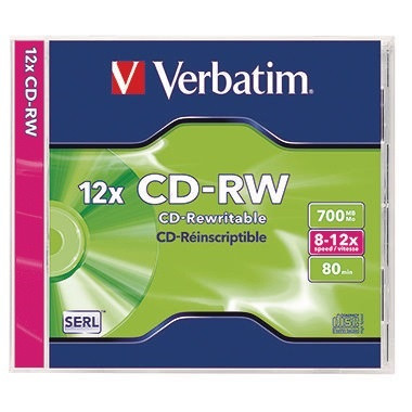 Die CD-RW ist eine wiederbeschreibbare Disc. Sie Erfüllt die Standards für Computersicherheit des Orange Book Teil III Band 2. Die CD-RWs von Verbatim sind mindestens 1.000-mal wiederbeschreibbar. Scratch Resistant. Diese Disc hat eine matte silberfarbene Oberfläche, beschreibbar mit einem CD/DVD-Marker. Inkl. der gesetzlichen Pauschalabgaben. · Aufnahmedauer: 80 min · Verhältnis der Schreibgeschwindigkeit: 8-12x · mehrfach beschreibbar: Ja · Kapazität des Speichers (unkomprimiert): 700 Mbyte · freier Inhalt: 10 St./Pack. · Ausführung des Behälters: Jewelcase · Ausführung des Inhalts (Packung): 10 St./Pack.