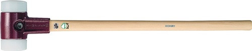mit auswechselbaren Schlagköpfen aus weißem Superplastik · sehr widerstandsfähig · verschleißfest · Holzstiel · mittelharter Schlag · Anwendungsbereiche: Randsteine setzen, Zelt-/ Hallenbau, Zaunbau, Gleisbau, Garten-/ Landschaftsbau, Spaltkeile einschlagen · Weitere technische Eigenschaften Länge: 1000mm • Gewicht: 5200g • Kopflänge: 200mm • Einsätze: Superplastik weiß • Kopf-Ø: 100mm • Schlag: mittelhart • Stiel: Hickory
