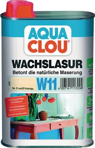 Wachslasur W11 Farbe 5 weiß 250 ml Dose AQUA CLOU