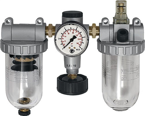 Standard · dreiteilig, bestehend aus einem vordruckunabhängigen, rücksteuerbaren Membrandruckregler mit Sekundärentlüftung, einem Zentrifugalabscheider und einem Proportionalöler · mit Polycarbonatbehälter · Innengewinde · Weitere technische Eigenschaften A: 259mm • C: 55mm • Ablassventil: halbautomatisch • B: 223,4mm