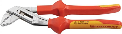 VDE-isoliert bis 1000 V · gefertigt gem. IEC / EN 60900, stückgeprüft bei 10000 V im Wasserbad · Klemmschutz · durchgestecktes Gewerbe verchromt · Präzisionsbolzen · 7 Rastpositionen · Spezial-Werkzeugstahl · Klemmschutz · verlängerte Isolation am Oberschenkel · ölgehärtet u. angelassen Griffe mit ergonomischen, abrutschsicheren 2-Komponenten-Hüllen mit Abgleitschutz