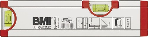 aus Aluminium · mit starkem, innenliegendem Haftmagnet · silberfarben eloxiert · Messgenauigkeit bei Normallage 0,5 mm/m, bei Umschlagsmessung 0,5 mm/m · kantenlose Horizontal-Libelle mit Lupeneffekt · schafft verzerrungsfreie Sicht auf Libellenblase (auch bei Umschlagsmessung) · mit Gummiendkappen als Stoßschutz · durch Kopflibelle kann das Lot von oben abgelesen werden · Weitere technische Eigenschaften Farbe: silber • Genauigkeit: ± 0,5mm/m