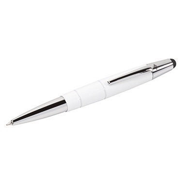 Leitfähiger Eingabestift mit Kugelschreiber. Der ideale Begleiter für die exakte Navigation auf allen Touchscreens. Der weiche Gummiaufsatz ermöglicht das treffsichere Verfassen von Nachrichten und bequeme Navigieren und Scrollen ohne lästige Fingerabdrücke auf dem Display. Funktioniert auch durch Schutz- bzw. Antireflexionsfolien. Mit dem Touch Pen haben Sie gleichzeitig auch immer einen Kugelschreiber zur Hand. In sportlichem Design mit zwei horizontalen Gravurlinien auf der hochglänzenden Oberfläche und chromfarbene Zierteile. · Material des Schaftes: Metall · Typbezeichnung der Mine: Großraummine · Strichstärke: 1 mm · Schreibfarbe des Kugelschreibers: blau · Radierer vorhanden: Nein · Produktverwendung: Smartphones, Tablet PC's · Farbe des Clips: silber · Mine auswechselbar: Ja · Werkstoff: Metall · Länge: 130 mm · Garantie gewährt: Nein · Farbe des Schaftes: weiß · Farbe der PDA-Mine: blau · Ausführung der Vorschubmechanik: Drehmechanik · Ausführung der Griffzone: gummiert · Anzahl der Schreibfunktionen: 1 Schreibfunktion · Material des Clips: Metall · Farbe: weiß