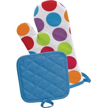 2 Topfhandschuh und 2 Topflappen im praktischen, farblich abgestimmten Set für den gefahrlosen Umgang mit heißen Töpfen und Pfannen, oder als sicherer Hitzeschutz beim Grillen.