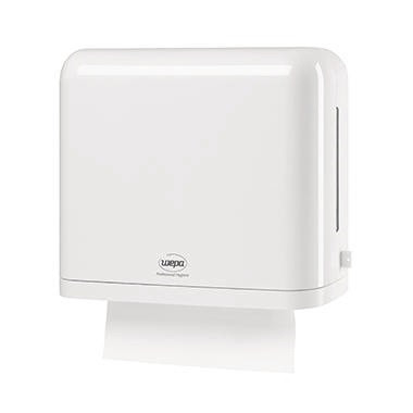 Im formschönen Design, integriert sich leicht in nahezu alle Waschräume. Der platzsparende Falthandtuch-Spender. Ideal für kleine Waschräume geeignet. · Farbe: weiß · Maße: 33 x 29 x 12 cm (B x H x T) · Werkstoff: Kunststoff