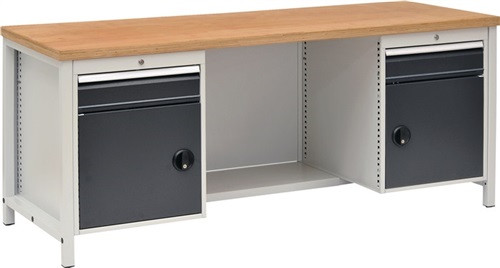 Werkbank grau/anthr.-grau B2000xH859xT750mm Buche Multiplex 40mm 2Schubl.2Türen