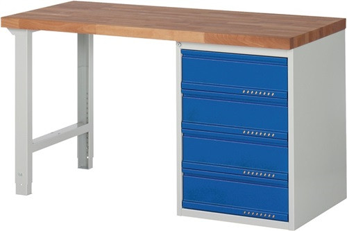 Werkbank Serie BK 650 B1500xT700xH840mm Buche lichtgrau enzianblau 4 x 180mm