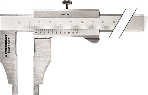 Skala und Nonius mattverchromt · mit Feststellschraube · Innen- und Außenmessung · Lochmaßansatz für Innenmessungen: bis 300 mm Messbereich = 10 mm 500 - 800 mm Messbereich = 20 mm · Weitere technische Eigenschaften Ableseart: analog