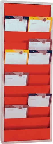 Stahlblech pulverbeschichtet · für Auftragstaschen oder Belege DIN A4 · Tafeln beliebig aneinander ansetzbar · Einstecktiefe 210 mm · Sichtrand 96 mm · Lieferung inkl. Befestigungsmaterial