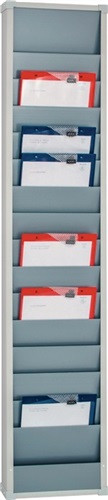 Kunststoff Polypropylen grau · für 6 bis 30 Auftragstaschen oder Belege DIN A4 · mit Ablagefach, Tafeln beliebig aneinander ansetzbar · Einstecktiefe 210 mm · Sichtrand 96 mm · Lieferung inkl. Befestigungsmaterial