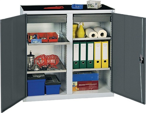 Werkzeug-/Beistellschrank H1000xB1000xT500mm 2Schubl.,4BD lichtgrau/anthrazitgr.