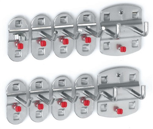 10-teilig Lieferumfang: 7 Werkzeughalter mit schrägem Ende, 2 doppelte Werkzeughalter, 1 Werkzeugklemme · Weitere technische Eigenschaften Ausführung: 7 Haken/2 Doppelhaken/1 Werkzeugklemme