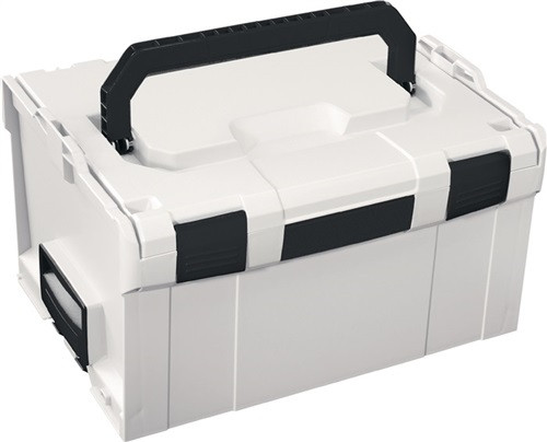 aus schlagfestem ABS · grau, weiß, schwarz · mit Bedienteilen · Frontgriff · Tragegriff in schwarz · verklick- und stapelbar · Transport und Aufbewahrungslösung für Werkzeuge, Zubehör und Verbrauchsmaterialien in einer BOXX® · perfekt auf die Anforderungen des Mobilen Arbeitens abgestimmt, und dies sowohl auf der Baustelle als auch in Fahrzeugeinrichtungen · die L-BOXX® als Kernprodukt ist erhältlich in vier verschiedenen Größen · Lieferung ohne Inhalt