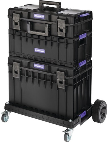 mobile Werkstatt als Lagerung und Transport von Werkzeugen und Maschinen · alle Module lassen sich durch ein 3-Klemmen-System miteinander verbinden · die Boxen lassen sich mittels einem Vorhangschloss (nicht im Lieferumfang enthalten) durch unbefugten Zugriff schützen · stabile Tragegriffe und 2 robuste Klickspannverschlüsse · auf dem Deckel befinden sich jeweils 2 Kleinteilefächer/Organizer aus schlagfestem PP · alle Boxen sind durch die innenliegende Dichtung wasser- und staubdicht · Weitere technische Eigenschaften Außentiefe: 510mm • Außenhöhe: 1027mm • Außenbreite: 745mm