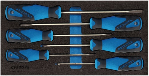 (1/3 Modul) mit Schraubendrehern mit ergonomischem 3-Komponenten-Griff für gute Kraftübertragung · Klinge aus Vanadium-Plus-Stahl · matt verchromt