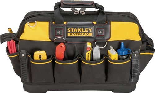 wasserdichter Boden aus robustem Kunststoff · verstärkte Nähte · ergonomischer Gummihandgriff · komfortabler und robuster Schultergurt · Lederverstärkungen an allen kritischen Stellen · elastische Halterungen im Inneren zum Befestigen von Werkzeugen