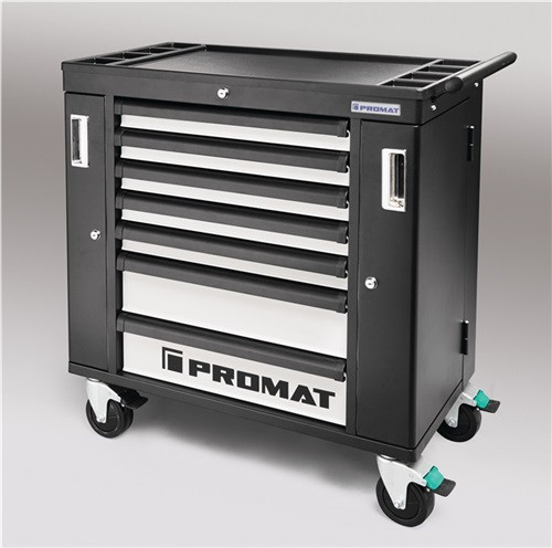 mit 7 auf kugelgelagerten Teleskopschienen herausziehbaren Schubladen mit 100 % Auszug mit jeweils einer Antirutschmatte · automatischer Schubladeneinzug · Schubladensicherheitsystem verhindert selbstständiges Öffnen der Schubladen · mit Zentralverriegelung (nur eine Schublade gleichzeitg geöffnet) · Einteilerset für 4 Schubladen im Lieferumfang enthalten · abschließbar mittels eingebauten Zylinderschloss mit 4 Schlüsseln · durchgezogener Kantenschutz · hochwertige PVC Rollen · 4 lenkbare Rollen · 2 davon können starr gestellt werden · inkl. Bremsfunktion an allen 4 Rollen · 2 abschließbare Flügeltüren mit Lochwandsystem und 5 Kleinteileboxen · beidseitiges Lochwandsystem und Dosenhalter in den Türinnenseiten Maß über alles aufgebaut mit Griff und Rädern (B x T x H) 990 x 480 x 990 mm Maß nur Korpus (B x T x H) 910 x 474 x 815 mm Innenmaß Schubladen (B x T x H) 5 x 568 x 398 x 75 mm Innenmaß Schubladen (B x T x H) 2 x 568 x 398 x 154 mm Tragkraft pro Schublade 40 kg / statische Gesamtbelastbarkeit 650 kg · Lieferung ohne Werkzeuge/Inhalt
